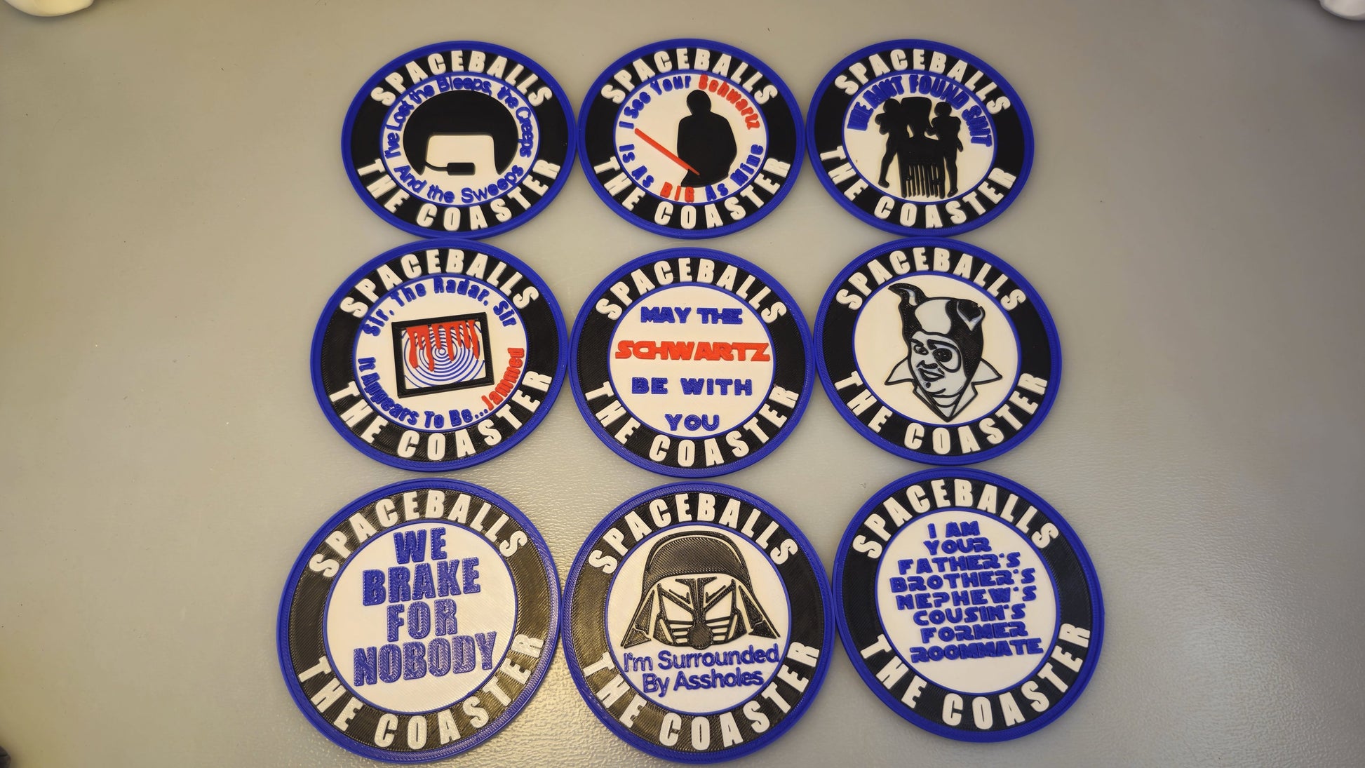 A set of 9 coasters featuring iconic quotes from the most ridiculously legendary space parody of all time.