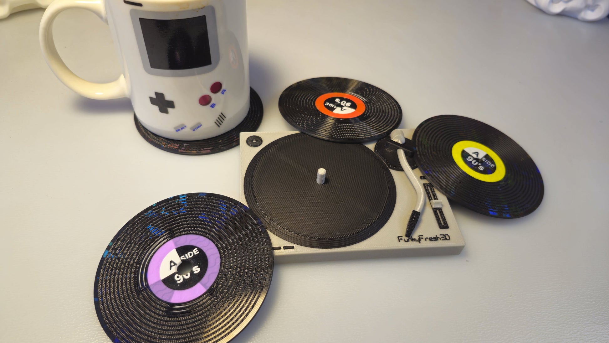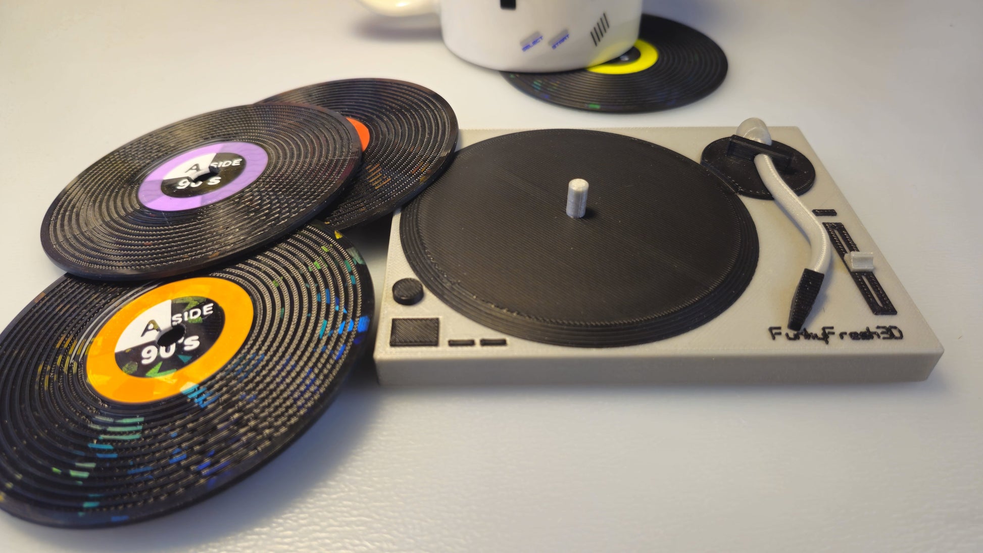 Vinyl Record Coasters with MK2 Turntable Base – Set of 4 | 3D Printed